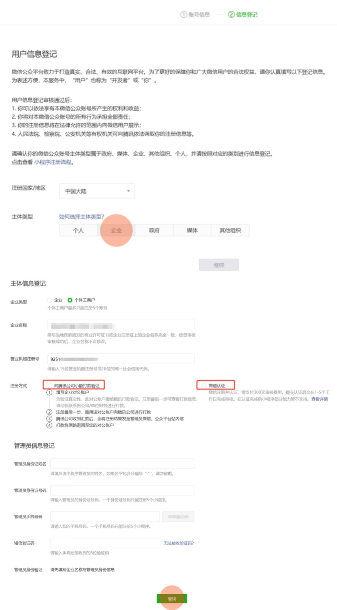 微信认证:通过微信认证验证主体身份,需支付300元认证费