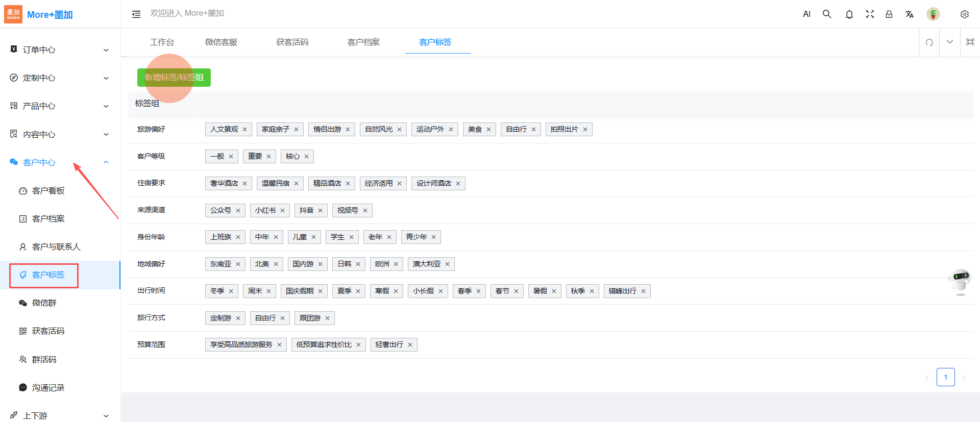 - 添加标签,点击【客户中心-客户标签-新增便签/标签组】