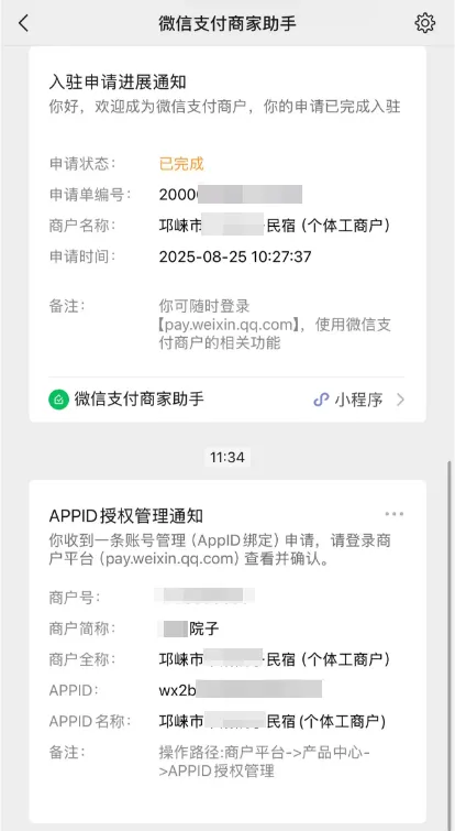 - 超级管理员再次进入【微信支付商家助手】公众号,查看通知并完成最终绑定操作
