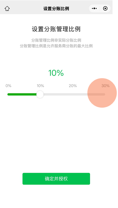 - 客服后台发起分账协议签署,超级管理员【微信支付商家助手】公众号收到提醒,设置到最大分账比例30%,以便分销及上下游自动分账
