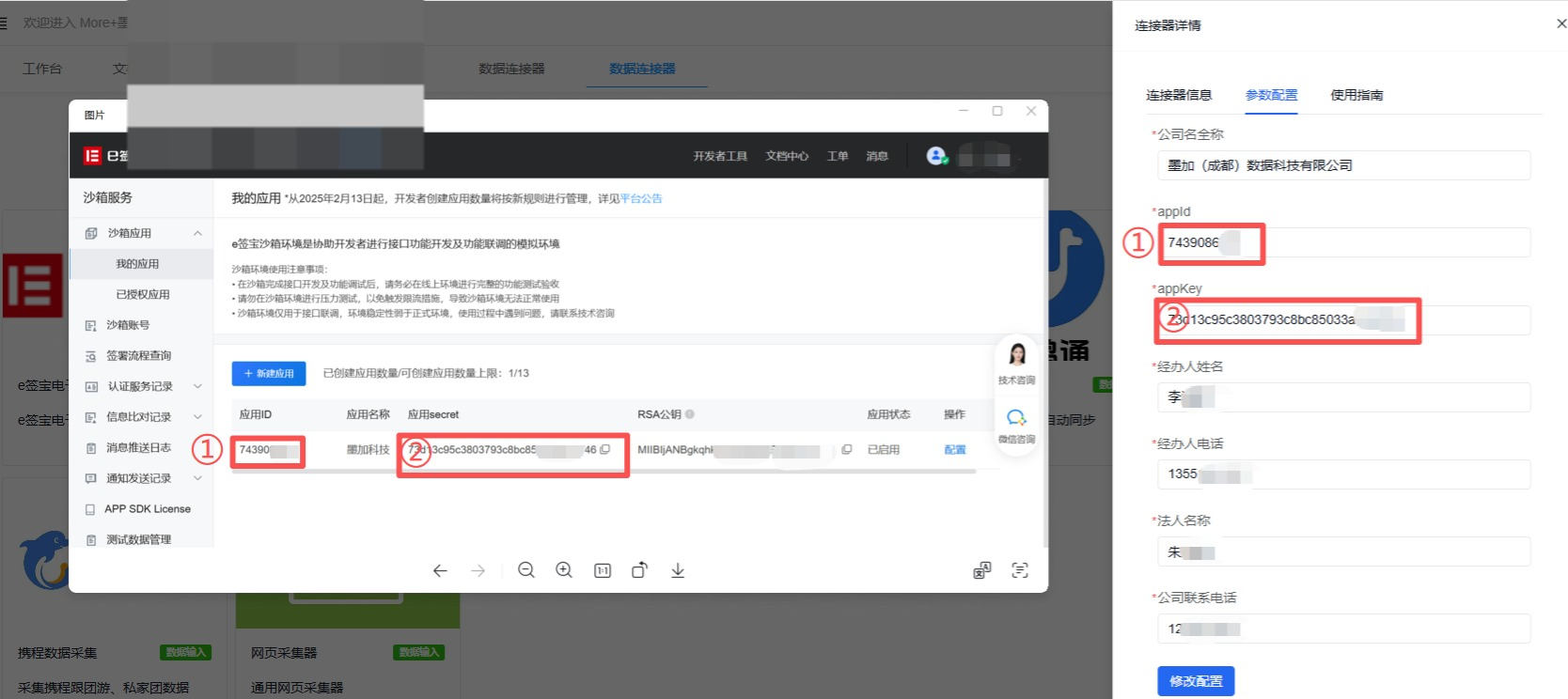 点击: 【参数配置】,参数的值需要到对应的电子签平台获取